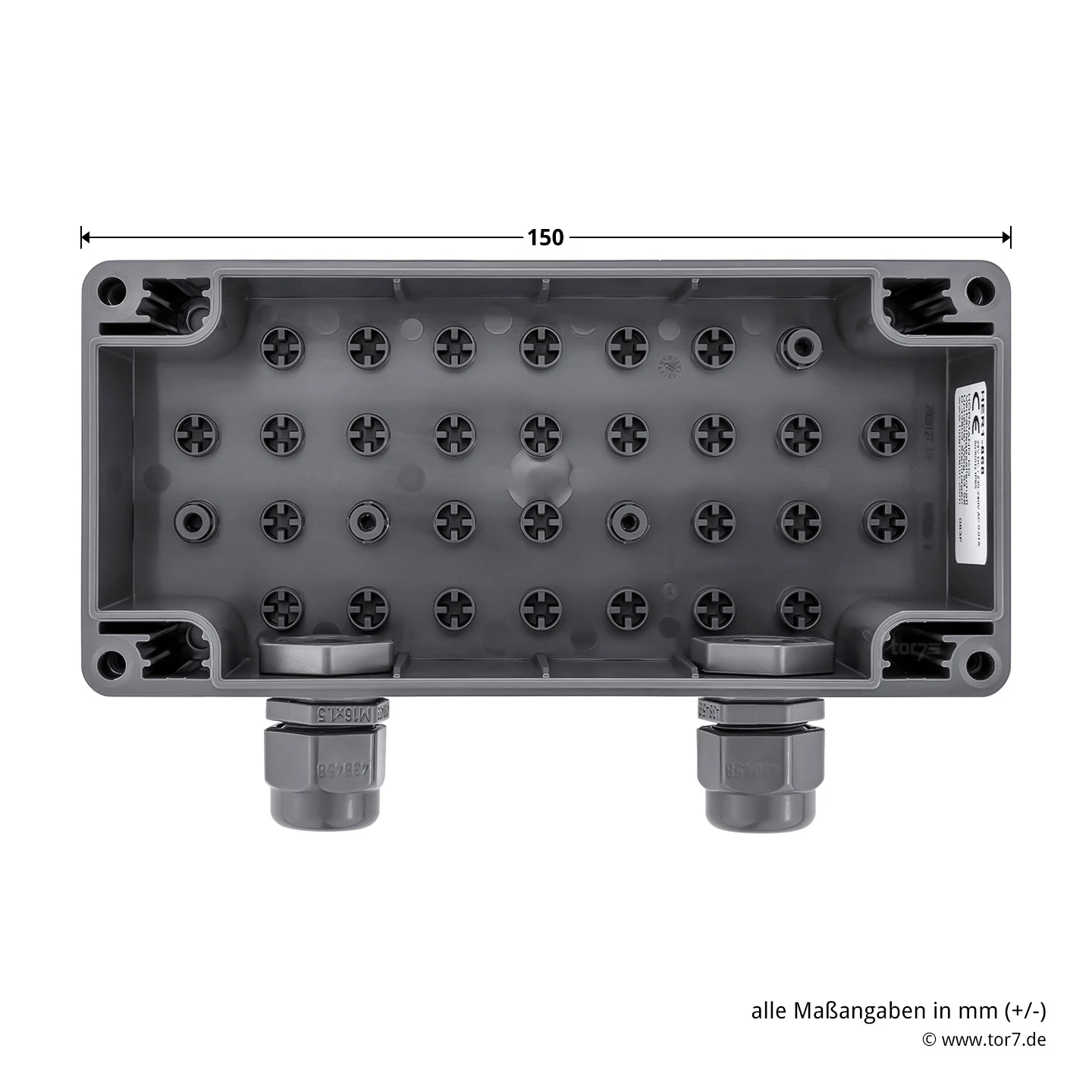 - Maße (BxHxT): 150 x 70 x 55 mm (ohne Verschraubung)