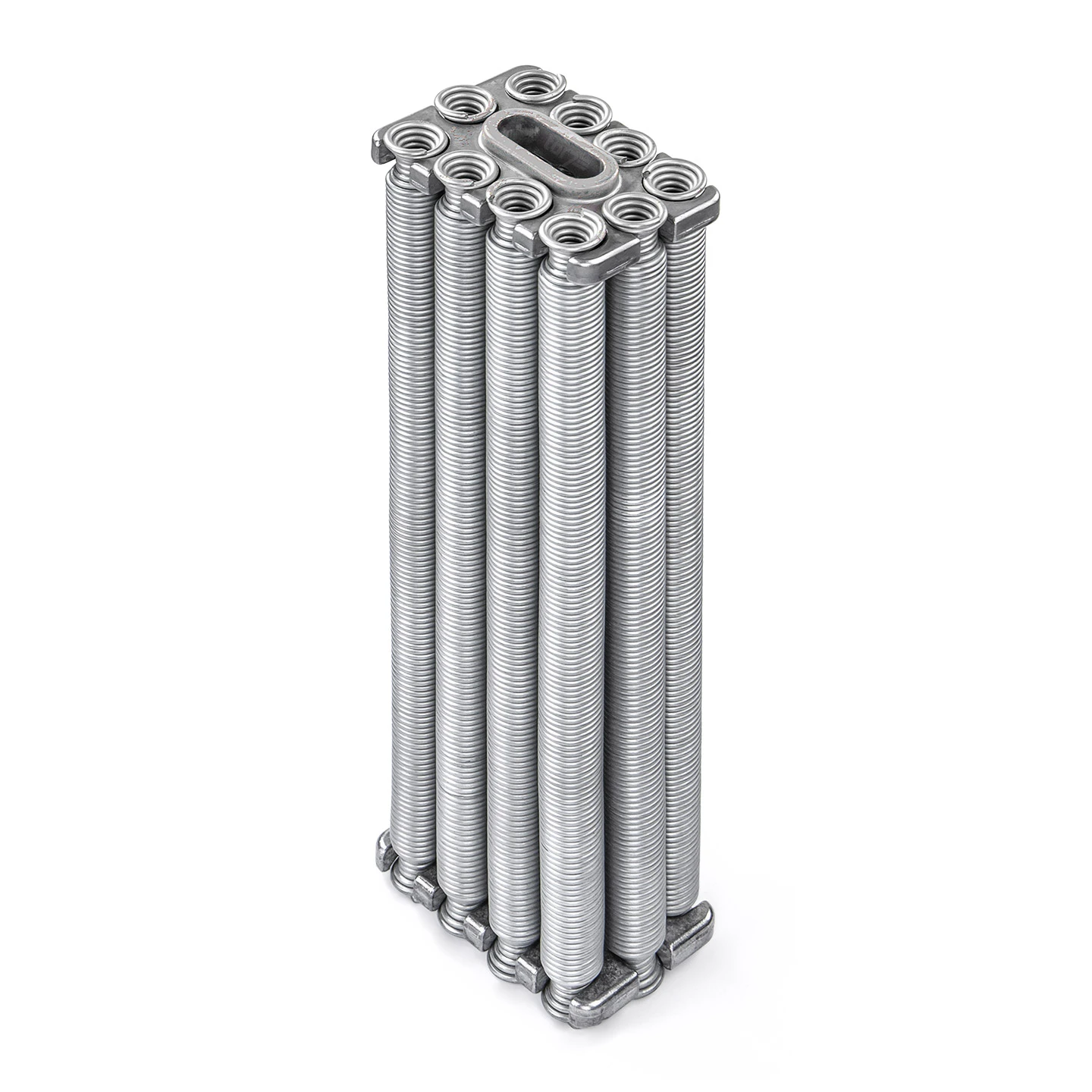 Die Mehrfachfeder besteht hier aus zehn Einzelfedern, die innerhalb eines Rahmens eingebaut sind. Diese sind als Federn des Typs 3454 komplett blank und daher nicht farblich markiert. Allgemein gibt es von den Mehrfachfedern 24 verschiedene Varianten mit unterschiedlicher Anzahl an Einzelsträngen, die abhängig vom Gewicht des Torblatts eingesetzt werden. Bitte vergewissern Sie sich vorher, ob tatsächlich eine Hörmann Berry DF-Mehrfachfeder 3454 x 10, blank verbaut war. Hat Ihr defektes Teil weniger als zehn Stränge oder sind diese farblich markiert, so ist es definitiv eine andere Feder.