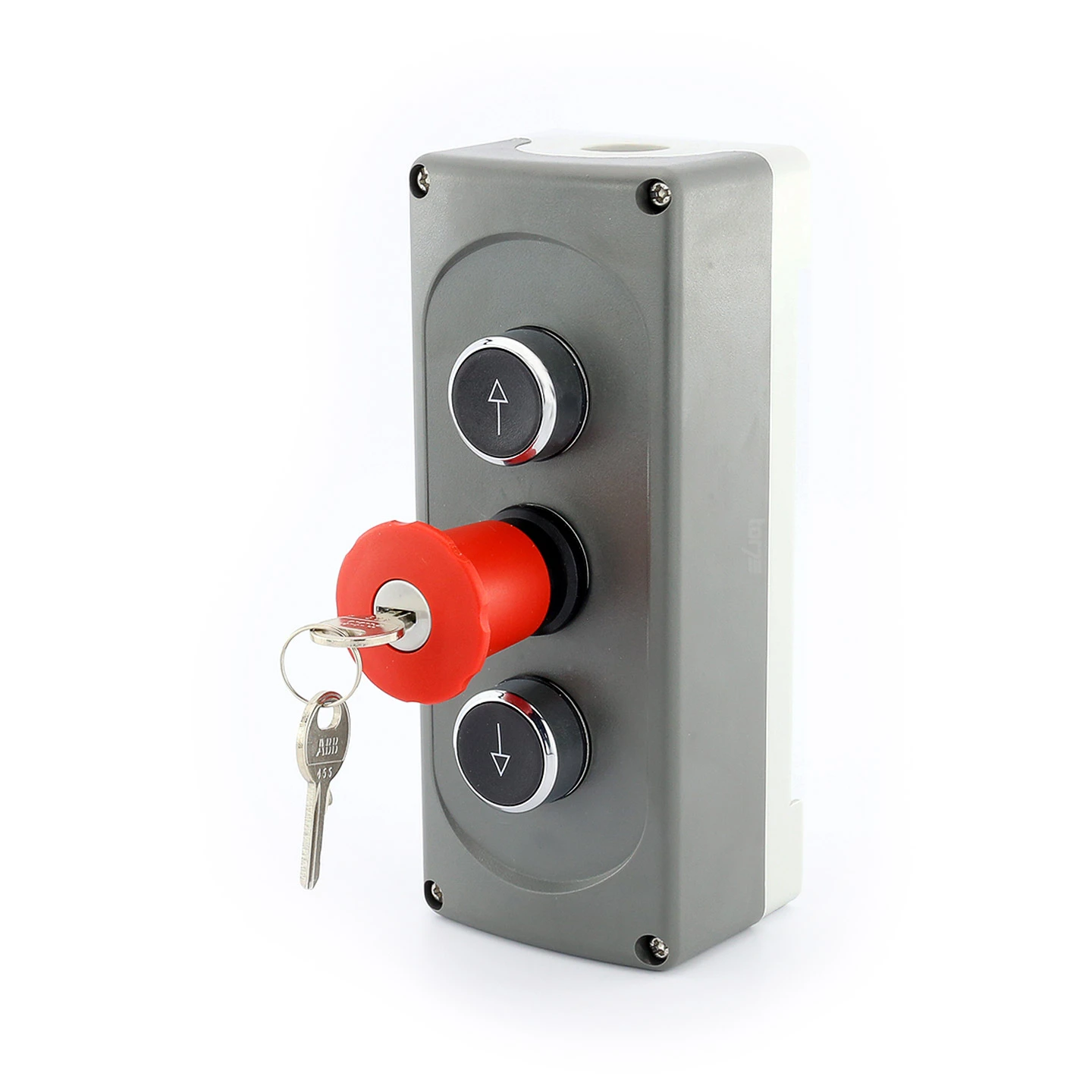 Der Hörmann Drucktaster DTNA 30 dient als zusätzliches Bedienelement für den Hörmann Schiebetorantrieb STA 400 und somit für industrielle Zufahrten. Ausgerüstet mit der Schutzklasse IP 65 ist der Taster staubdicht, bietet Schutz vor starkem Strahlwasser und kann somit problemlos im Außenbereich montiert werden. Die Bedienung erfolgt über die Tasten Auf und Zu. Die zusätzliche Bedientaste Halt ist rastend, d. h. bei Betätigung rastet der Taster ein und wird erst durch Ziehen wieder entsperrt. Erst dann kann der Taster wieder verwendet werden. Zum Schutz vor unbefugtem Zugriff ist der Drucktaster mit einem Miniaturschloss am Halttaster ausgestattet und wird mit 2 Schlüsseln geliefert. Alle verwendeten Materialien und Komponenten sind aus hochwertigen und langlebigen Materialien gefertigt und sorgen so für einen praxistauglichen, dauerhaften Einsatz.