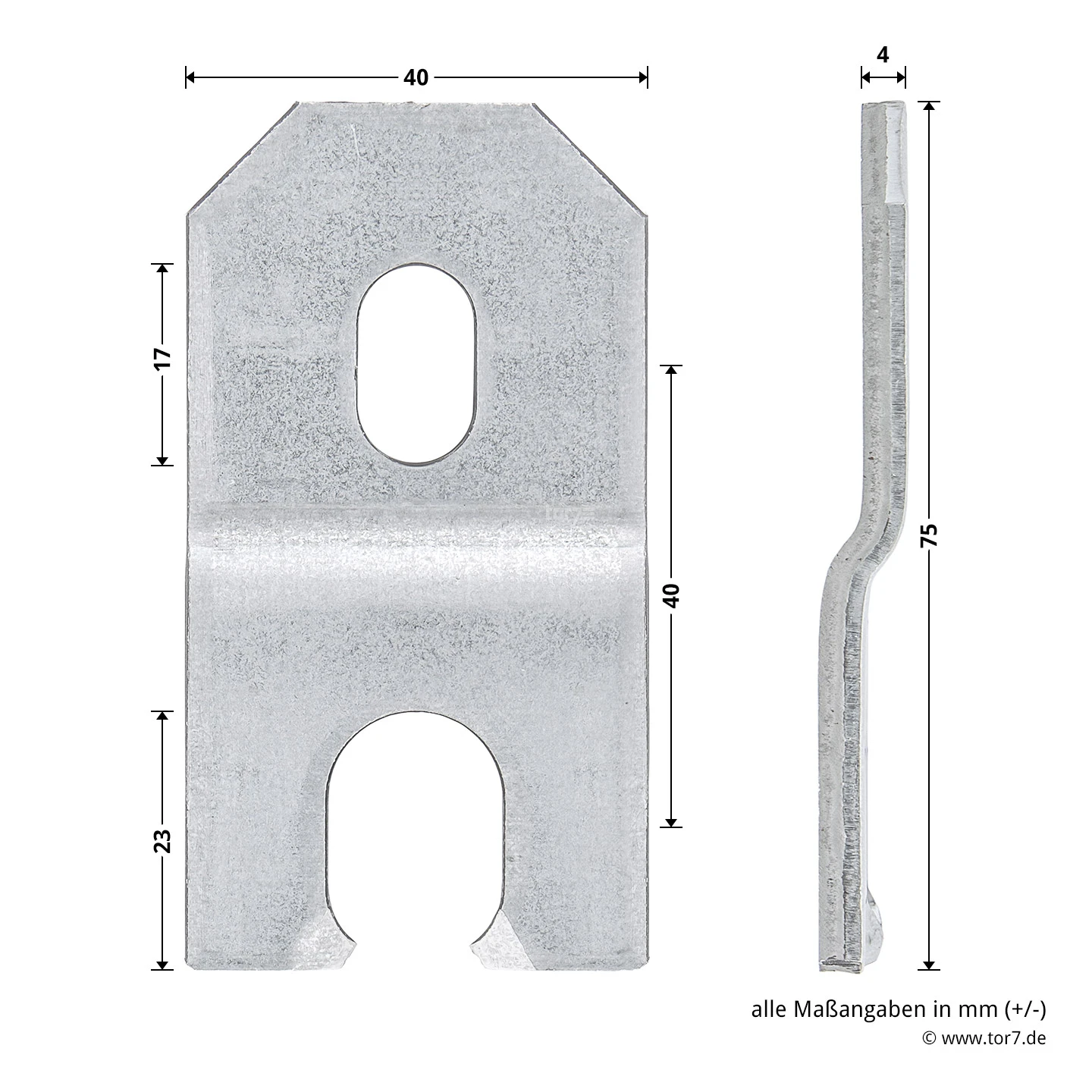 Die Hörmann Dübellasche eignet sich ausschließlich für Hörmann Multifunktionstüren aus Stahlblech, die mit einer Eckzarge ausgestattet sind und eine Falztiefe von 46 mm aufweisen. Mit dieser Falztiefe sind Türen mit 45 mm starkem Türblatt in Dünnfalzausführung oder mit 55 mm starkem Türblatt in Dickfalzausführung ausgestattet. Diese werden mit einer Eckzarge ausgeliefert, die über Ankerlaschen in Mauerwerk oder Beton befestigt wird. Hierfür ist die Zarge mit entsprechenden Schraubzapfen ausgestattet, auf die die Dübellaschen geschraubt werden. Diese normalen Ausführungen müssen eingeputzt werden, womit die Montage in Sichtmauerwerk oder Beton nicht möglich wäre. Dafür, dass auch diese Türausführungen verdeckt montiert werden können, die Ankerlaschen also nicht sichtbar sind, eignen sich diese Dübellaschen von Hörmann. Die Auslieferung erfolgt hierbei paarweise mit den passenden Muttern zum Verschrauben an der Zarge. Zu beachten ist hierbei, dass die Dübellaschen nur für die genannten Türtypen geeignet sind. Für Ausführungen mit abweichender Türblattdicke oder Falzausführung, werden passende Dübellaschen vom Hersteller angeboten.