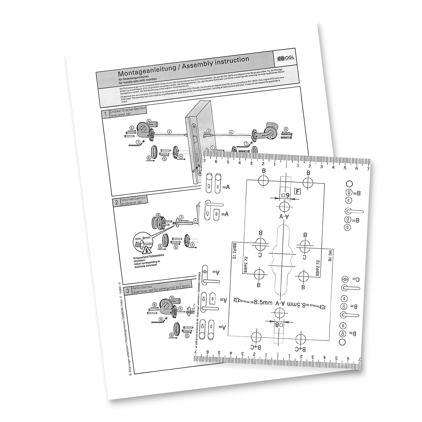 - Fremdfabrikate mit Türblattstärke zwischen 45 und 65 mm