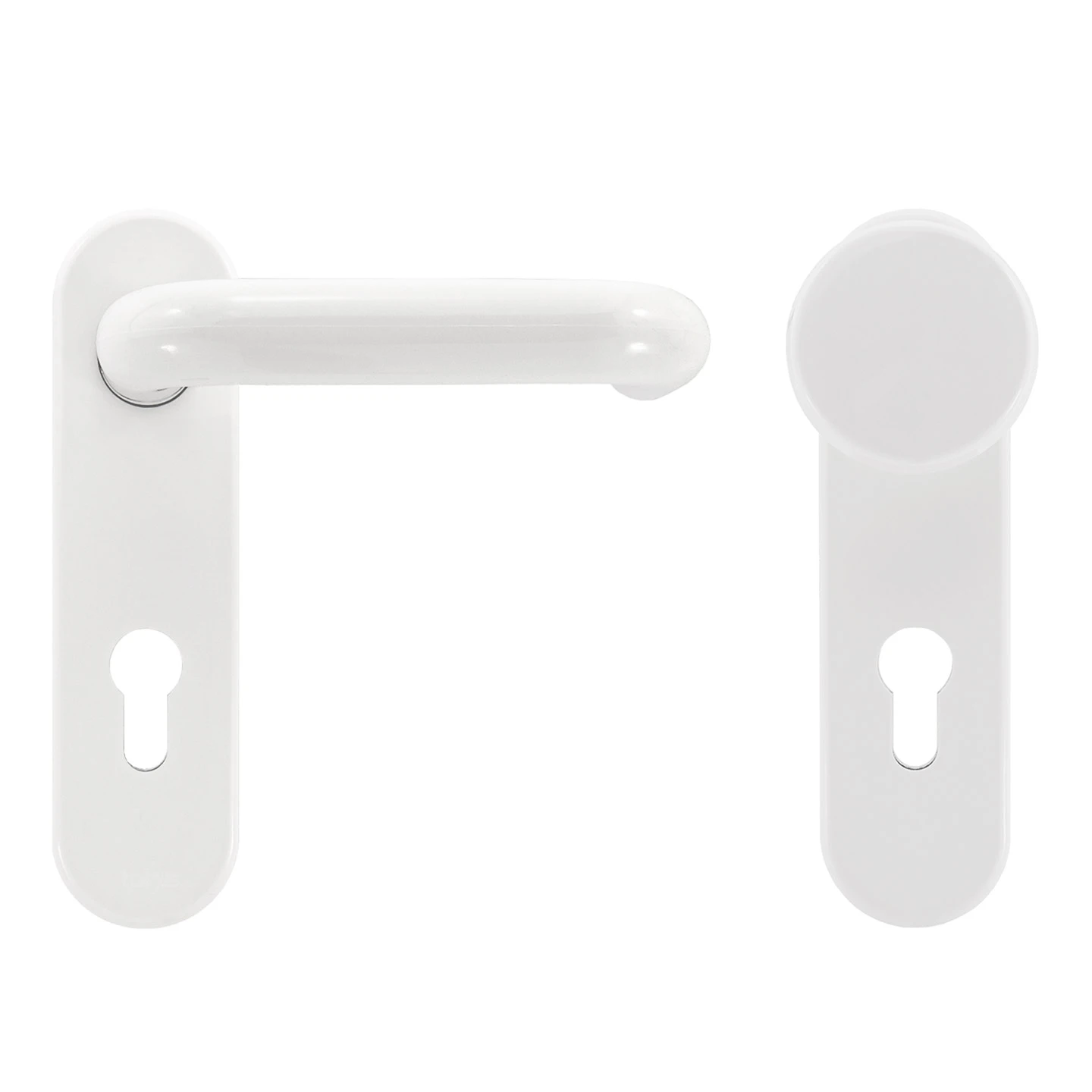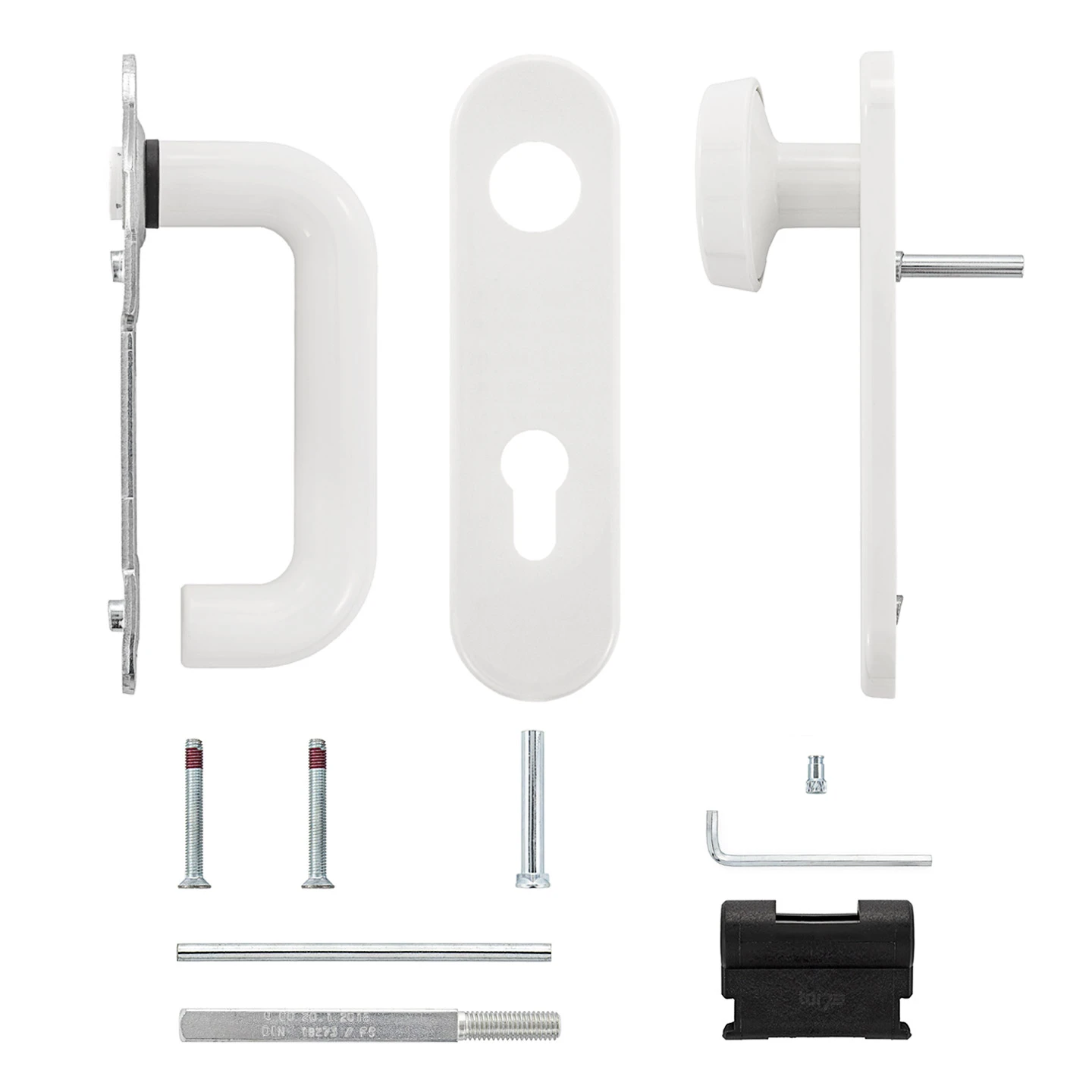 Die Hörmann FS Wechselgarnitur D110 Kurzschild PZ Kunststoff weiß kann an Hörmann-Multifunktionstüren aus Stahlblech oder auch an Fremdfabrikaten mit einer Türblattstärke zwischen 45 und 65 mm eingesetzt werden. Durch die bauaufsichtliche Zulassung als Brandschutzgarnitur kann die Montage ohne Bedenken auch an Brand- oder Rauchschutztüren erfolgen.