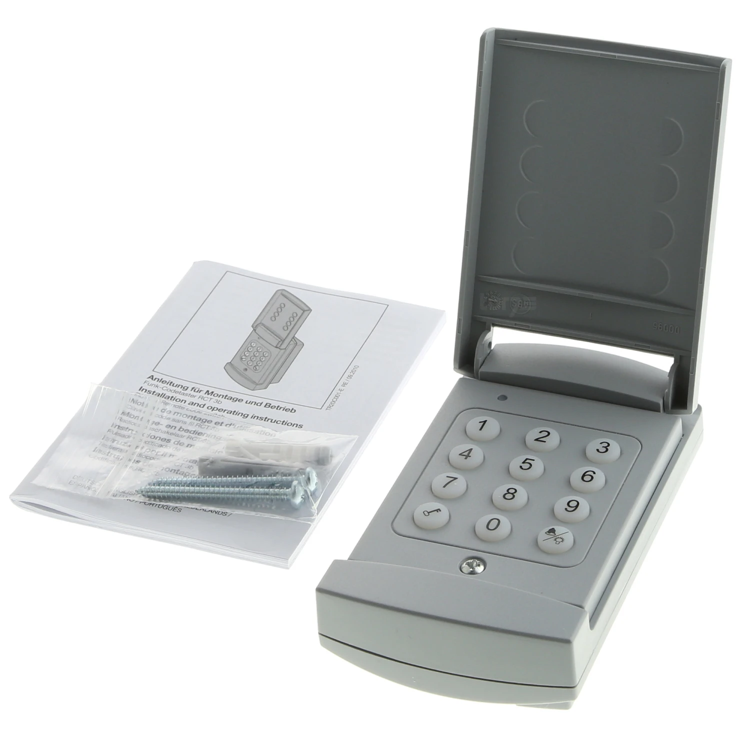 Bis zu 3 Garagentorantriebe lassen sich mit dem Funk-Codetaster RCT 3b steuern. Er funkt mit dem Standard 433 MHz Rolling Code. Somit ist er vornehmlich für die Torantriebe EcoStar Liftronic gedacht. Seine beleuchtete Tastatur ist auch im Dunkeln gut zu bedienen. Die verbaute Klappe schützt die Tastatur vor äußeren Einflüssen. Hierzu zählen Witterung, mechanische Kräfte und Temperatur. Funktionsstörungen durch Staub und anderen Schmutz beugt sie ebenso vor.
