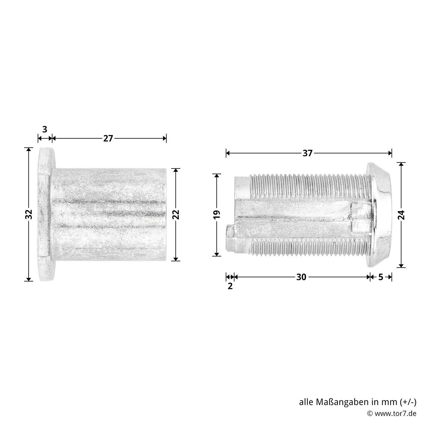 - Schraubhülse für doppelwandige Tore Bohrungsdurchmesser 23 mm
