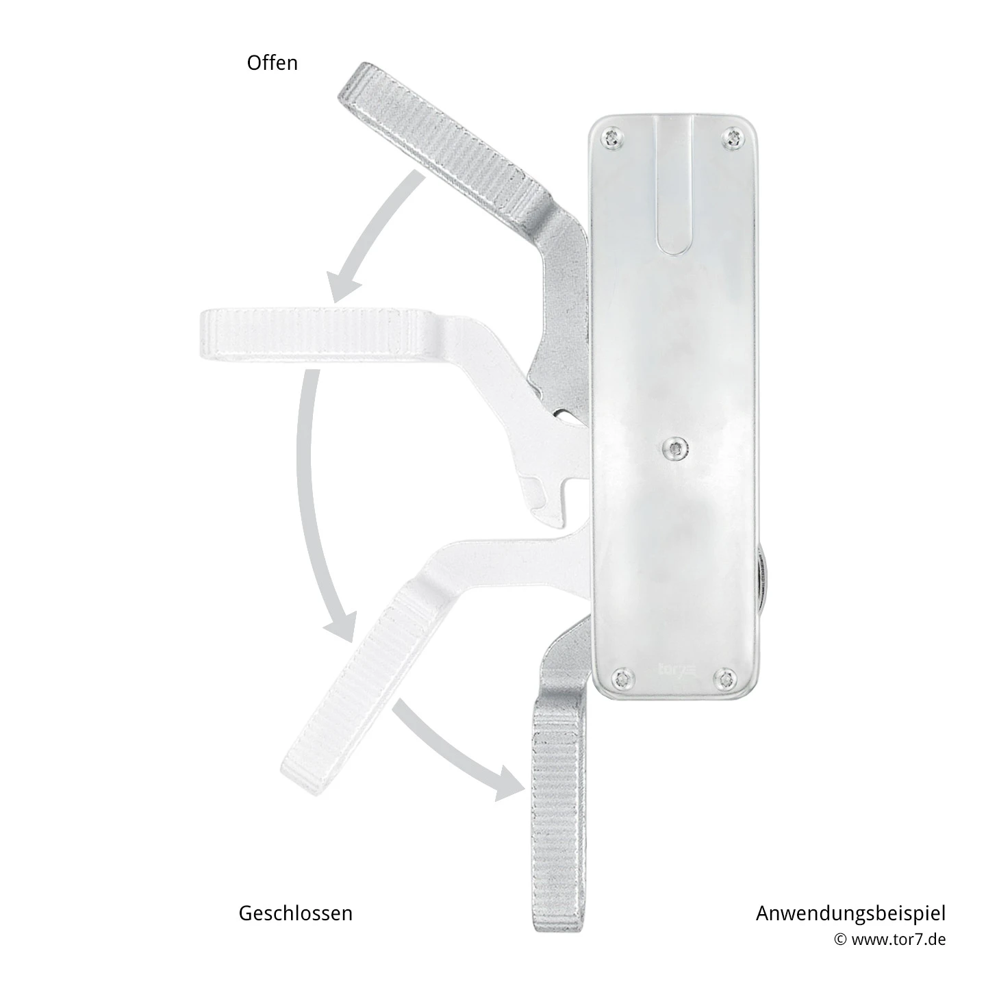 Hinweis: Der Hörmann Tortreibriegel Basküle links, unten schließend ist speziell auf links angeschlagene Falttorflügel ausgelegt. Derselbe Torriegel ist jedoch auch als Variante Hörmann Tortreibriegel Basküle rechts, unten schließend verfügbar.