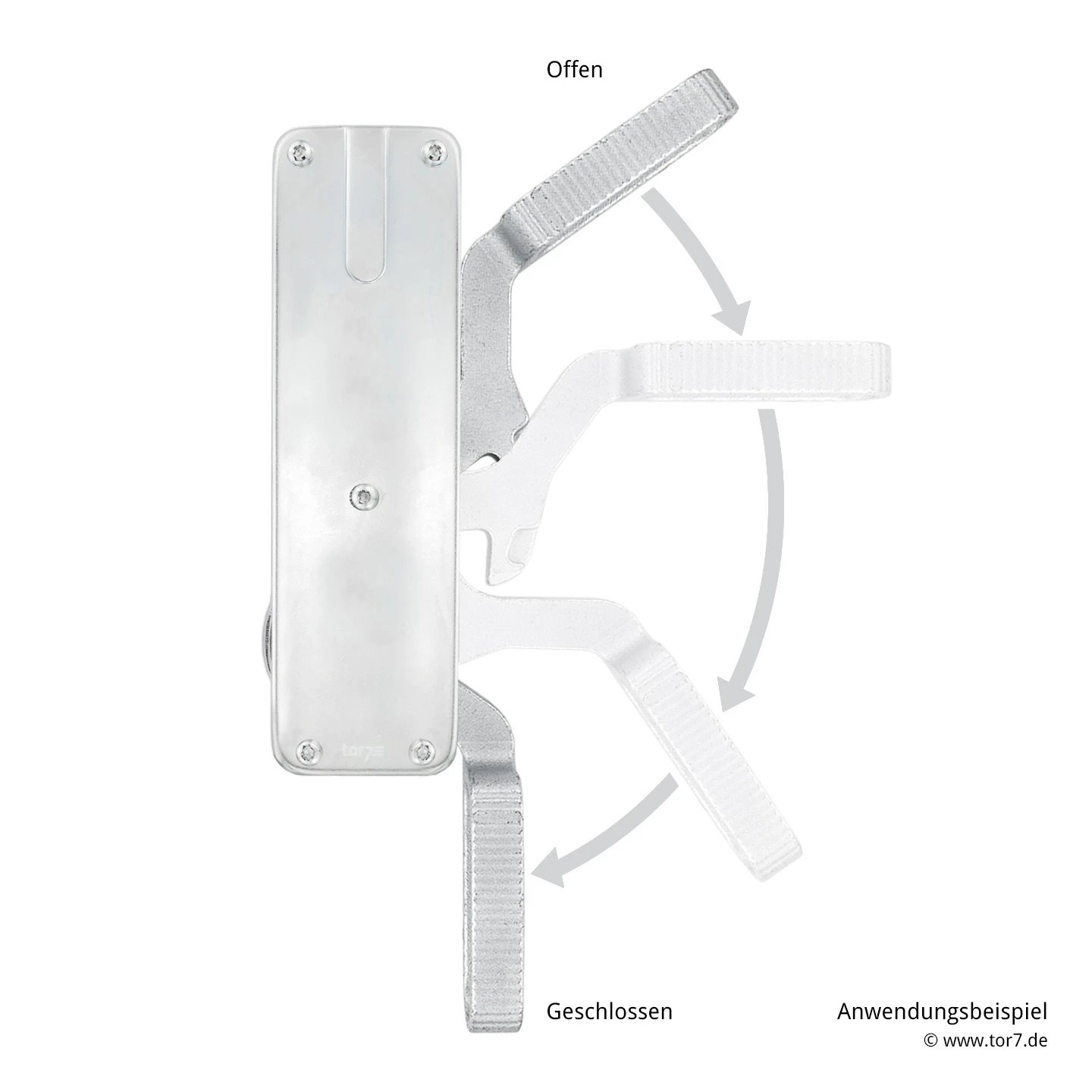 Hinweis: Der Hörmann Tortreibriegel Basküle rechts ist nur für Falttorflügel auf der rechten Seite geeignet. Handelt es sich dagegen um links angeschlagene Flügel, so ist alternativ der Hörmann Tortreibriegel Basküle links erhältlich.